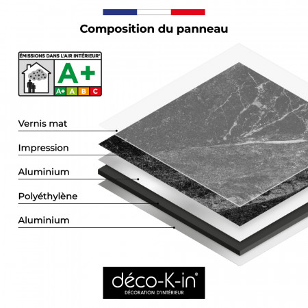La crédence de cuisine MARBRE NERO incarne l’élégance intemporelle du marbre noir. Son décor intense, parcouru de veinages clairs et de nuances minérales, crée un contraste sophistiqué et graphique. La finition mate adoucit les reflets et met en valeur la profondeur du noir pour un rendu résolument contemporain.