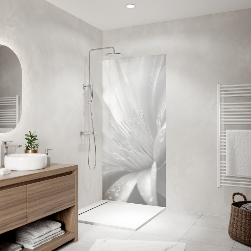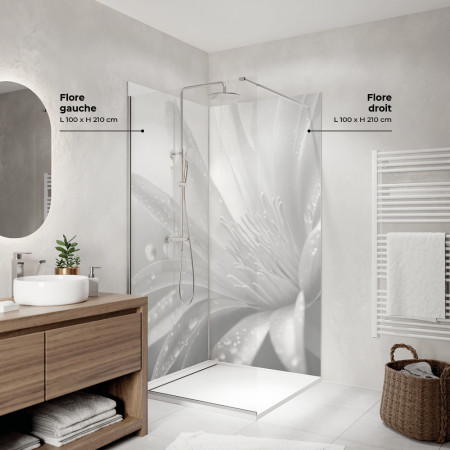 Le panneau mural Flore transforme votre salle de bain en un véritable écrin de douceur. Ce décor en diptyque, composé d’une version gauche et d’une version droite, met en scène une fleur en gros plan, captée dans toute la délicatesse de ses pétales et la finesse de ses détails.