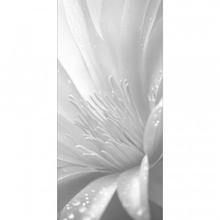 Son rendu en noir et blanc, tout en nuances subtiles, crée une atmosphère raffinée et apaisante, idéale pour un espace dédié au bien-être. Le jeu de textures et de lumières souligne la beauté naturelle des formes florales, offrant un effet visuel à la fois minimaliste et sophistiqué.