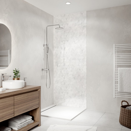 Le décor mural Marbre Géo associe l’élégance intemporelle du marbre blanc à un motif géométrique subtil et moderne. Ses lignes fines créent des jeux de reliefs et de perspective, idéals pour donner du rythme et du caractère à vos espaces tout en conservant la pureté du marbre.