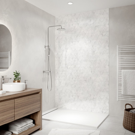 Le décor mural Marbre Géo associe l’élégance intemporelle du marbre blanc à un motif géométrique subtil et moderne. Ses lignes fines créent des jeux de reliefs et de perspective, idéals pour donner du rythme et du caractère à vos espaces tout en conservant la pureté du marbre.