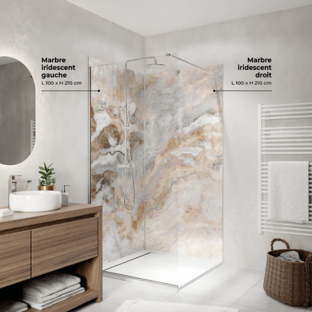 Le décor mural Marbre Iridescent révèle toute la richesse des nuances minérales avec ses veinures ondoyantes aux reflets beige, blanc et doré. Proposé en finition brillante, ce visuel en diptyque illumine vos espaces en jouant sur la profondeur et l’élégance du marbre.