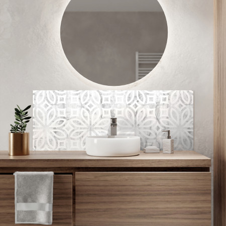 Apportez une touche orientale et raffinée à votre intérieur avec Marocco Blanco. Son motif géométrique inspiré du zellige marocain, en blanc et gris marbré, évoque l’artisanat traditionnel revisité. La finition brillante sublime les reliefs et offre une élégance lumineuse.