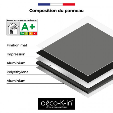 En contraste avec des matériaux clairs comme le marbre blanc ou le bois clair, il souligne les lignes architecturales de votre salle de bain et met en valeur les éléments décoratifs et sanitaires. En finition mat, ce panneau devient un véritable atout design, jouant sur la sobriété et l’intensité de sa couleur.