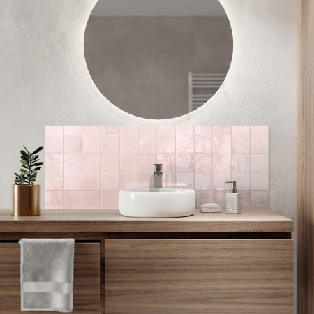 Apportez douceur et élégance à votre salle de bain avec le panneau mural Zephyr rose, un revêtement raffiné qui illumine vos espaces d’une touche délicatement moderne. Le format d'un carreau seul est de L 10 x H 10 cm.